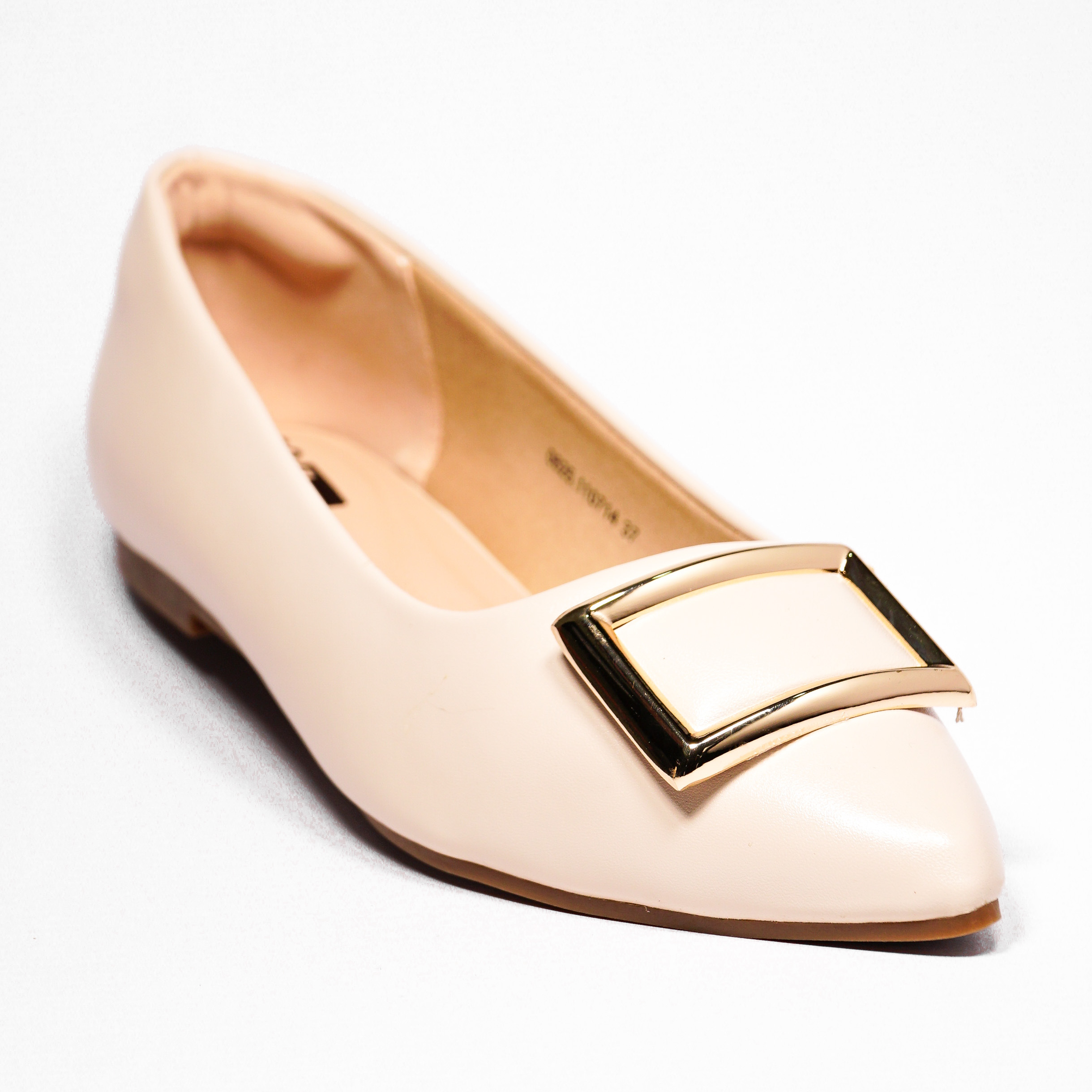 Refined and versatile pointed-toe flats designed to elevate your everyday look. Crafted with a sleek silhouette, these flats feature a subtle gold accent that adds a touch of elegance without overpowering the design. The soft inner lining provides enhanced comfort for all-day wear, making them ideal for both work and casual outings. Finished with a low 1 cm heel, they offer just the right amount of lift while ensuring stability and ease with every step. A perfect balance of style, comfort, and sophistication for any wardrobe.
